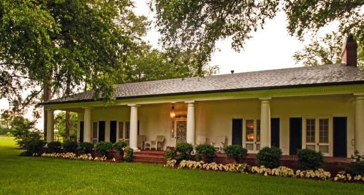 The lovely Green House Bed & Breakfast was built with lumber from the dismantled cypress homes of South Louisiana. You’ll fall in love with its colorful green and pink exterior and the many period antiques located inside. On the property, you’ll find deer, rabbits, squirrels, peacocks, and chickens, giving you a true Louisiana farm experience.