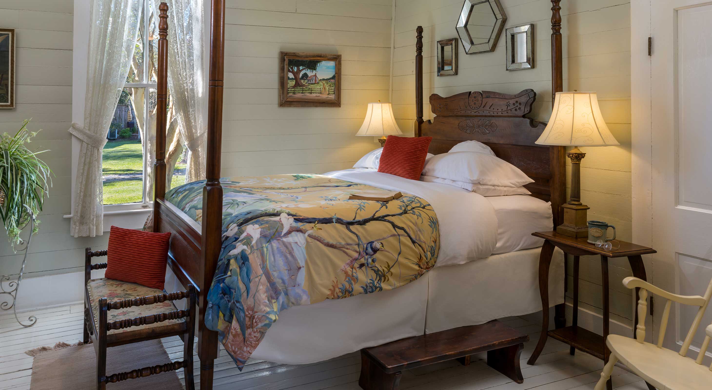 Maison D’Memoire Bed & Breakfast Cottages is conveniently located in the heart of Cajun Country, just 15 minutes from Lafayette in the delightful community of Rayne, known as the “Frog Capital of the World” and “The City of Murals.”