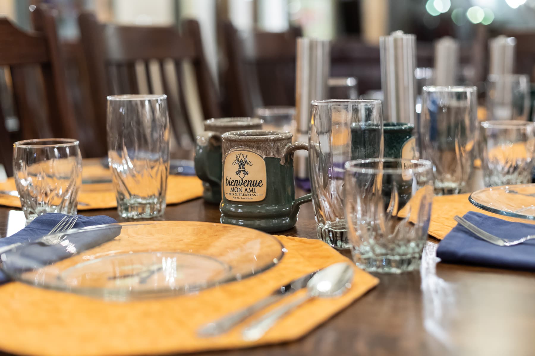 All overnight guests have access to the wrap around porch, HDTV, hot tub, WiFi, communal dining facilities, general living area and game room. Only service pets are allowed and require advance notice. Our facility is not child friendly. All our overnight guests will be treated to a fine cuisine full breakfast. Appetizers, snacks and/or beverages are generally available on arrival and most evenings/afternoons. A guest use full kitchen is provided. Delight in a soothing soak in our 5-person hot tub. Hike to picnic areas near our recently stocked 2-acre pond.