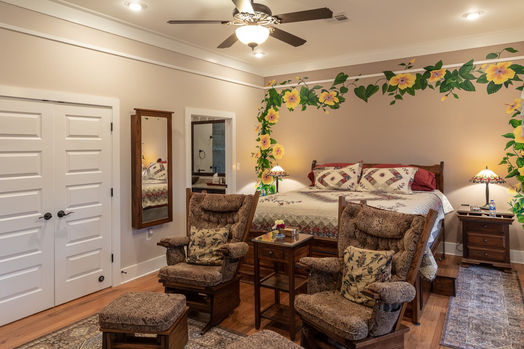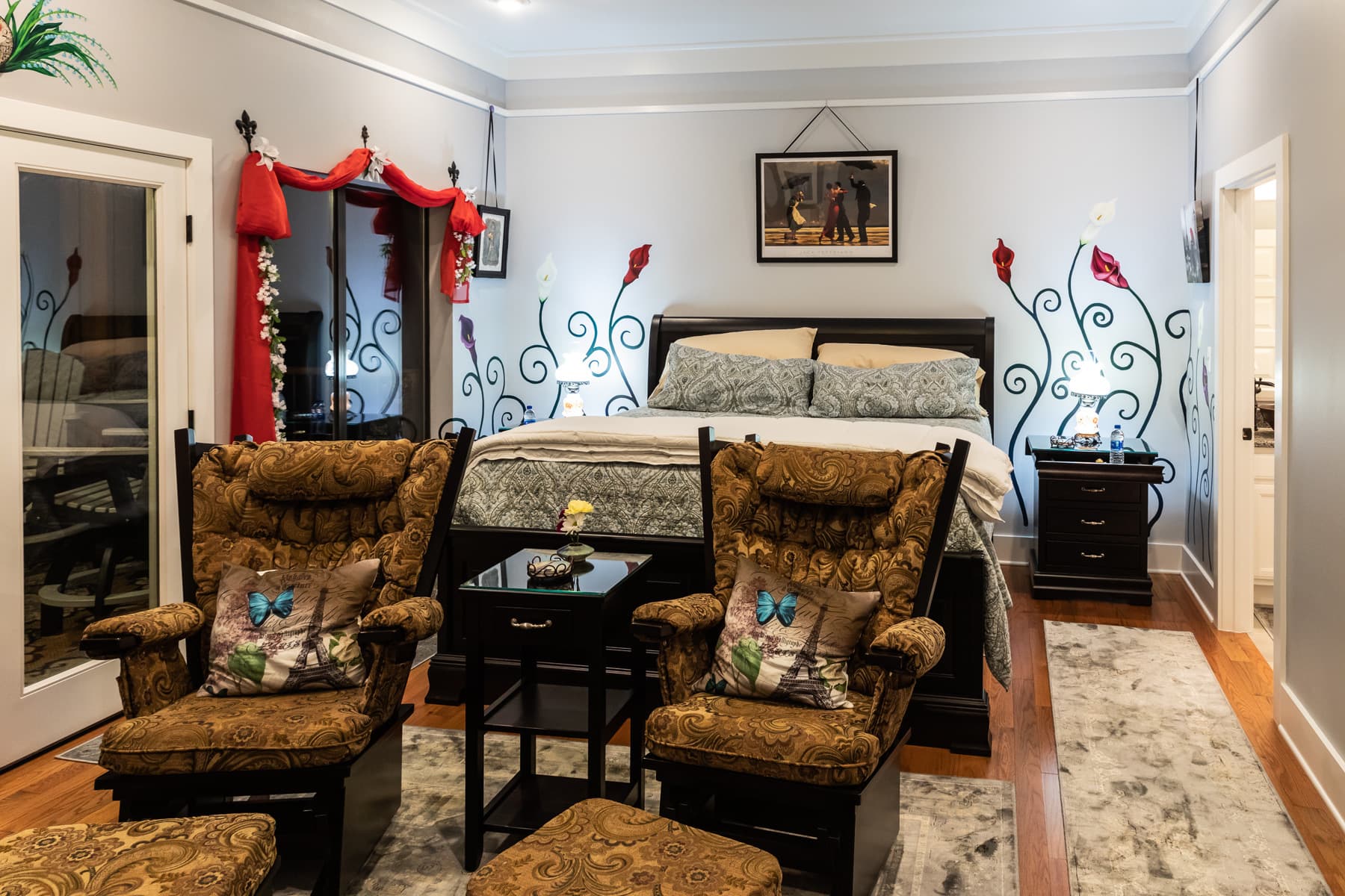 Tous les hôtes ont accès à la vérandah, à la HDTV, au jacuzzi, à la salle à manger et la salle de séjour, ainsi qu’à la salle de jeux. Vous êtes sûr de bien vous reposez dans chacune de nos chambres, meublée d’un lit king ou d’un lit queen avec matelas sleep number. Chaque chambre a son petit coin salon et sa salle de bains privée.